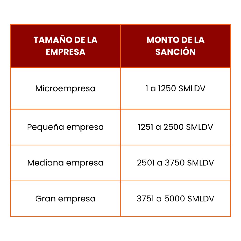 Las sanciones, si se confirma el despido discriminatorio, corresponden ?¿a multa que oscila entre uno (1) y cinco mil (5000) salarios mínimos legales diarios vigentes (SMLDV). Para ello, deberá aplicar criterios de razonabilidad con base en el tamaño y capacidad económica de la empresa infractora, según los siguientes rangos: